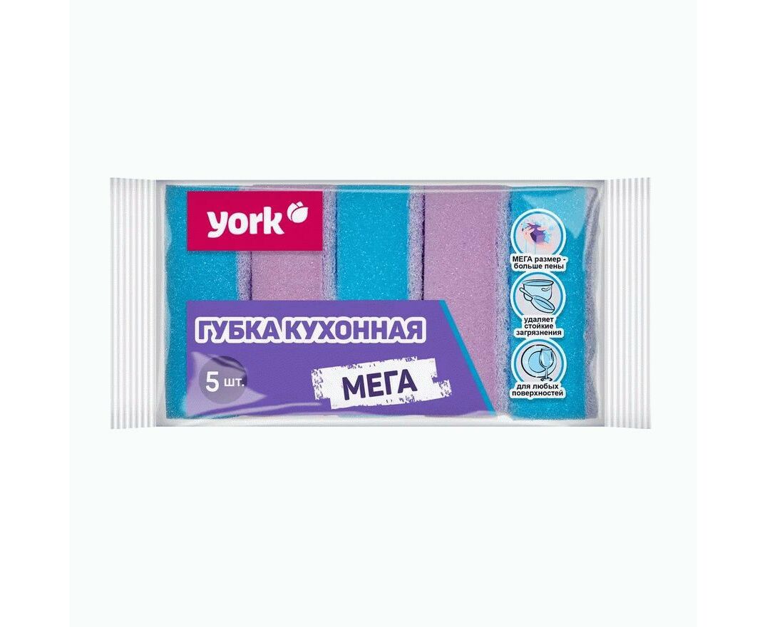 Губки для посуды поролон/абразив,100*70*35мм,Мега,5шт,030360/ YORK