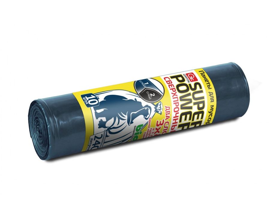 Представляем вашему вниманию мешки для мусора SUPER POWER 240л/10шт, 40мк, ПНД, рулон, 2-слойные, 101-094 GRIFON.