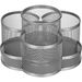 7 секций для пишущих принадлежностей и канцелярских мелочей. Выполнена из металла (сетка). Секции расположены в форме цветка. Поставляется без канцелярского наполнения. Цвет серебряный. Размер 110165175 мм.