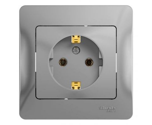 Розетка Systeme Electric (ранее Schneider Electric) серии Glossa (в сборе, цвет алюминий) одинарная без заземления и без шторок подходит для сетей 250 В, на ток 16 А.