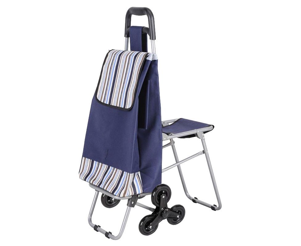 Сумка-тележка со стульчиком Полоски 50кг, 38*20*59см, кол. пластик тройные d=100мм, 93561, Рыжий Кот (418225)