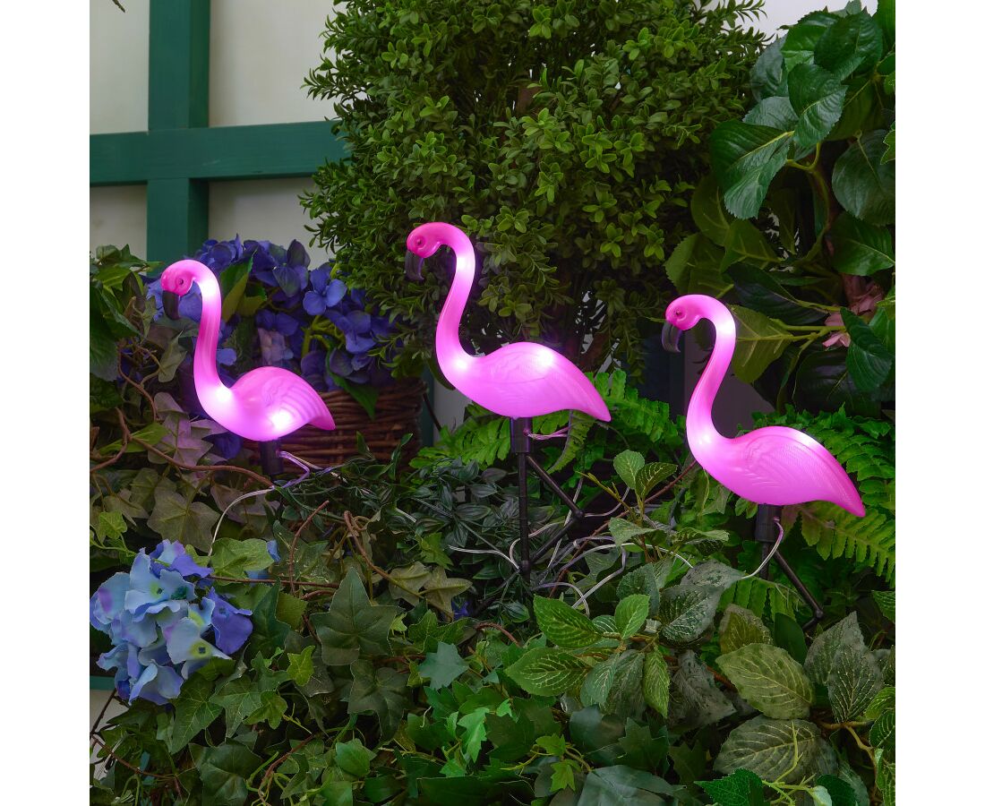 Uniel св-к на солн.батарее «Фламинго» 6LED 0,06W 4000K 4K 570x185x185 IP44 3 шт/уп пластик/розовый